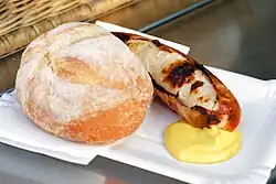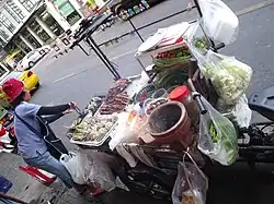 Street foods—ready-to-eat food or drink sold in a street or other public place, such as a market or fair, by a hawker or vendor, often from a portable stall[1]— have variations within both regions and cultures.[2] For example, Dorling Kindersley describes the street food of Vietnam as being "fresh and lighter than many of the cuisines in the area" and "draw[ing] heavily on herbs, chile peppers and lime," while street food of Thailand is "fiery" and "pungent with shrimp paste... and fish sauce" with New York City's signature street food being the hot dog, although the offerings in New York also range from "spicy Middle Eastern falafel or Jamaican jerk chicken to Belgian waffles."[3] In Hawaii, the local street food tradition of "Plate Lunch" (rice, macaroni salad and a portion of meat) was inspired by the bento of the Japanese who had been brought to Hawaii as plantation workers.[4]