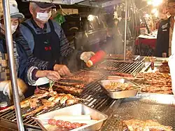 Taiwan's street food sold at night markets is well known in Asia, especially that from the city of Tainan. The Dadong night market in Tainan has a large unique variety of foods such as oyster omelets, corn on the cob, fried squid, fried eel noodles, fish balls and pork blood, Taiwanese hot dogs, and ice cream on a stick.[32]