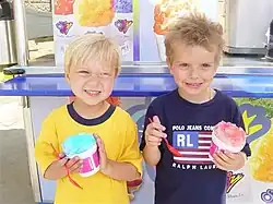 People can buy soft serve and other ice creams from vans which drive around the streets. The vans alert potential customers with a tinkling tune, for example "Greensleeves" or "The Entertainer".