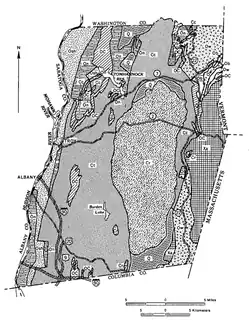 The Rensselaer Plateau is a small plateau located in the central portion of Rensselaer County, New York; it generally encompasses significant parts of the towns of Berlin, Stephentown, Sand Lake, Poestenkill, and Grafton, along with small sections of several other nearby towns. Many glacial lakes, including Big Bowman Pond, Little Bowman Pond, Round Pond and Spring Lake are located on the plateau.[1] Elevations on the plateau range from 1,000 to 2,000 feet (305 to 610 meters) above sea level. Vegetation on the plateau is more similar to that found in the Adirondack Mountains to the northwest, with abundant Eastern White Pine, Eastern Hemlock, Red Spruce, and Balsam Fir, along with more limited occurrences of Red Pine and Tamarack.[2] While most to all of the plateau was logged late in the 19th century and early in the 20th century, little farming was undertaken afterwards due to extremely poor and rocky soils, allowing much of the forest to regenerate.[3]