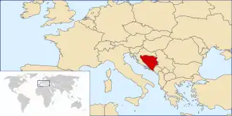 The Republic of Bosnia and Herzegovina (Serbo-Croatian: Republika Bosna i Hercegovina / Република Босна и Херцеговина) was a state in Southeastern Europe, existing from 1992 to 1995. It is the direct legal predecessor to the modern-day state of Bosnia and Herzegovina.[2]