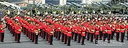 The Republic of Korea Army Band (ROK Army Band; Korean: 대한민국 육군군악대) is a South Korean state ceremonies unit of the Republic of Korea Army that is the representative marching band of the ROK Army and the seniormost one in the ROK Armed Forces, reporting directly to the Army Capital Defense Command. It specializes in Korean martial and traditional music and modernized adaptations of folk songs for performances during concerts.[1] It mainly performs at state arrival ceremonies at the Blue House in Seoul with the Joint-Service Guard of Honour. It was formed in the 1950s as a result of a pan-ROKAF creation of military bands.[2]