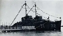 In October 1949, the ROK Navy purchased a 600-ton submarine chaser, the former USS PC-823 with funds raised among its personnel. She was renamed ROKS Baekdusan (PC 701) after Paektu Mountain, and became "the first significant warship of the newly independent nation".[20][21]