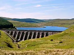 Grwyne Fawr Reservoir, the only reservoir within the Black Mountains massif was completed by Abertillery and District Water Board in 1928, serving to supply water to various towns in the traditional county of Monmouthshire.[8] A holding reservoir in Cwmtillery was constructed as a part of the scheme. Blaenycwm Reservoir to the northwest of Brynmawr, was originally constructed as a water supply for Nantyglo Ironworks but enlarged for public supply during the 20th century.[9]