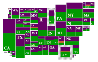 Nationwide, the RealClearPolitics tally counted one caucus participant as equal to one primary participant. However, turnout is generally lower in caucuses, and as a result, the popular vote may overweight the influence of primary states.[14] For example, Hawaii and Rhode Island have similar populations, but the opinion of Rhode Islanders is weighted more heavily in the popular vote total. Clinton won the Rhode Island primary 58-40% and received 33,600 more votes than Obama. In contrast, Obama won the Hawaii caucuses 76-24%, but received only 19,500 more votes than Clinton.[13] Thus, some researchers argue that the popular vote underestimates the depth of Obama's support in caucus states.[15] If these states were to hold primaries and Obama were to win by a similar margin, his popular vote total would be considerably higher.[15] However, Clinton argued that she would have done better in these states if primaries were held.[16]