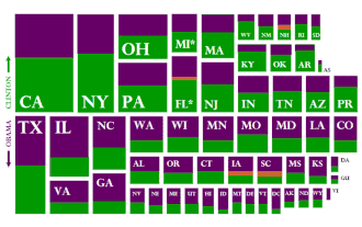 Finally, the nomination was decided by delegates under the Democratic Party's rules, so the candidates campaigned to maximize their delegate advantage. If the nomination were decided by popular vote, they likely would have campaigned differently, in order to run up the vote in populous states like New York and Illinois. House Speaker Nancy Pelosi has said that the popular vote should have no effect under the current rules: "It’s a delegate race. The way the system works is that the delegates choose the nominee."[19] Obama's chief strategist suggested that the Clinton campaign's focus on the popular vote was a distraction tactic: "When they started off, it was all about delegates.... Now that we have more delegates, it’s all about the popular vote. And if that does not work out, they will probably challenge us to a game of cribbage to choose the nominee."[19] Nevertheless, polls have shown that a plurality of Democrats think superdelegates should consider the popular vote when deciding which candidate to support.[20]