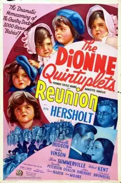 Reunion is a 1936 American comedy film and directed by Norman Taurog and starring the Dionne quintuplets, Jean Hersholt and Rochelle Hudson. It was produced and distributed by 20th Century Fox.