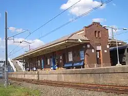 ![]() Southbound view of the station entrance, building and platform, December 2012 | ||||||||||||||||||||||||