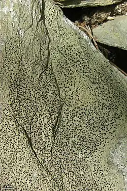 Rhizocarpon cinereovirens is a species of saxicolous (rock-dwelling), crustose lichen in the family Rhizocarpaceae.[2] This small lichen forms tiny white or pale grey crusts that seldom exceed a centimetre across, broken into minute plates with small black disc-shaped fruiting bodies. It grows on exposed, nutrient-poor siliceous rocks and metal-rich surfaces in both windswept mountain summits and coastal areas, and is found across the British Isles, Scandinavia, and northeastern United States. It is now confirmed from north-eastern China as well as the North Atlantic region of Europe and North America, giving the species a broad circumpolar–boreal distribution.