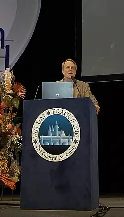 Binzel was on the "Planet Definition Committee"[5] that developed the proposal to the International Astronomical Union's meeting in Prague in 2006 on whether Pluto should be considered a planet. Their proposal was revised during the meeting and Pluto is now considered a dwarf planet. However, Richard Binzel has strong feelings contrary to this collective decision and would prefer for Pluto to still be classified as having full planet status.
