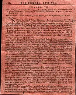 The record of Richard's burial was re-discovered in the parish registers around Michaelmas 1720. Heneage Finch, 5th Earl of Winchilsea, came across it when researching his own family. He passed it on, along with family tradition of his story, to Thomas Brett, L.L.D. Brett communicated it in a letter to William Warren, L.L.D., president of Trinity Hall, who in turn passed it on to Peck.