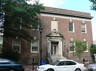 Richmond Academy of Medicine is a historic medical library building in Richmond, Virginia. It was built in 1931–32, and is a two-story, five bay square, brick and concrete Georgian Revival style building. The building features an elaborately designed entry with a large broken pediment and a cartouche bearing a caduceus. The building houses a library, dining room, auditorium, and offices. It was designed specifically to house what once was a regionally significant collection of early medical manuscripts, art work, instruments and incunabula.[3]