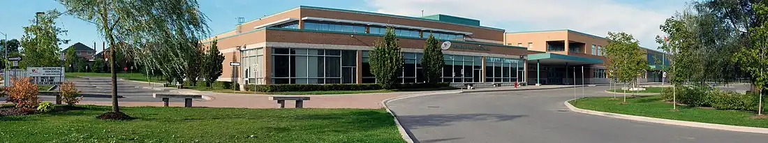 Richmond Hill High School is one of the oldest secondary schools in the Greater Toronto Area, founded on 2 December 1851 in a room donated by Abraham Law.[5] It has since expanded and changed locations on several occasions including in 1853, 1872, 1897, 1924, 1950, and 2000, having had been located on Yonge St. and Wright St. in 'downtown' Richmond Hill before moving to its present location at 201 Yorkland Street in September 2000.[6][7]