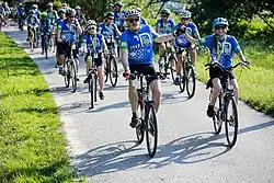 The 60-mile bike ride itself traces the Polish countryside, passing through various villages and towns from the Auschwitz-Birkenau en route to Krakow.[20] While the precise path changes year-to-year due to road conditions, in the past, it has mostly followed the Vistula Bicycle Route, moving through Oświęcim, Przeciszów, Podolsze, Morysina, Smolice, Miejsce, Spytkowice, Lipowa, Łączany, Chrząstowice, Pozowice, Facimiech, Ochodzi, Kopanka, and Skawina before ending in Kraków.[21]