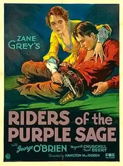 Riders of the Purple Sage is a 1931 American pre-Code Western film based upon the 1912 novel by Zane Grey, directed by Hamilton MacFadden, photographed by George Schneiderman, and starring George O'Brien and Marguerite Churchill.[1] The picture was released by the Fox Film Corporation with a running time of 58 minutes and remains the third of five screen versions. It was the first sound version.[1] The movie was followed later the same year by a similar adaptation of the novel's sequel, The Rainbow Trail, also starring O'Brien.