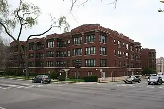 Ridge Manor is a historic apartment building at the northeast corner of Ridge Avenue and Davis Street in Evanston, Illinois. The three-story brick building was built in 1916. The building consists of two sections: the section facing Ridge Avenue contains the building's larger apartments, while the U-shaped section facing Davis Street contains smaller apartments and includes an open courtyard. Architect William H. Pruyn, Jr., designed the building. The building's design features limestone detailing, protruding bays, and a cornice and parapet at the roof line.[2][3]