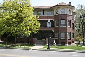 Ridgewood is a historic apartment building located at 1703–1713 Ridge Avenue (at Church Street) in Evanston, Illinois. The Chicago architectural firm of Atchison & Edbrooke designed the building in 1905; while the firm was only active from 1904 to 1908, it designed several buildings in Evanston. The building has a Prairie School design, a popular residential style at the time that was nonetheless unusual for an apartment complex. The three-story brick building is shaped in a "U" and features half-octagonal bays at regular intervals. Six apartments are on each floor; each features Prairie woodwork, cabinets built into the walls, and a fireplace.[2]
