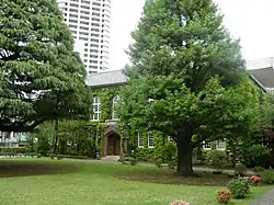 The original, red-brick, campus buildings, designed by Murphy & Dana Architects of New York, suffered structural damage in the 1923 Great Kantō earthquake but, due to the university's more suburban location, escaped the fires that destroyed much of the center of the city.