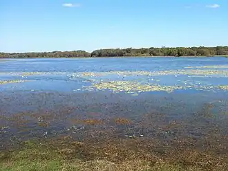 The park is known for its populations of waterbirds such as the brolga, sarus crane, black-necked stork, comb-crested jacana and magpie geese.[1] In the woodland and grassland area the agile wallaby, northern nailtail wallaby and Australian bustard may be found.