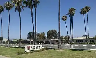Rio Mesa High School (RMHS) is a high school in Ventura County, California. Located northeast of Oxnard, the school is surrounded by strawberry fields and other crops growing on the Oxnard Plain. The school is part of the Oxnard Union High School District (OUHSD). It serves a portion of northeast Oxnard (including the neighborhood of RiverPark) and western Camarillo as well as the unincorporated communities of El Rio, Strickland, and Nyeland Acres. The name "Rio Mesa", conceived by OUHSD board member Bob Matthews at the time of the school's founding in 1965, is derived from the two original elementary school districts that fed the school — Rio and Mesa Union; since then, it has also regularly received students from the Pleasant Valley and Oxnard Elementary districts. Rio Mesa High School offers the International Baccalaureate Diploma Program.