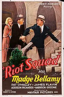 Riot Squad is a 1933 American pre-Code crime film directed by Harry S. Webb and starring Madge Bellamy, Pat O'Malley and Addison Richards. It was produced as a second feature and distributed by the independent company Mayfair Pictures.[1]