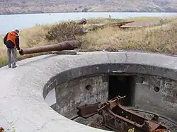 A walled fort, initially named Fort Ripa, was built on Ripapa in 1886 as part of a nationwide coastal defence system constructed due to the Russian scare, a fear that Russia would invade New Zealand. One of four fortifications set up to protect Lyttelton Harbour, it was renamed Fort Jervois after Lieutenant General Sir William Jervois in 1888. Four disappearing guns were installed by 1889. The fort was occupied by the New Zealand army until the end of World War I, during which it housed some prisoners of war, including Felix von Luckner.[5][7] It was again garrisoned during World War II.[6]