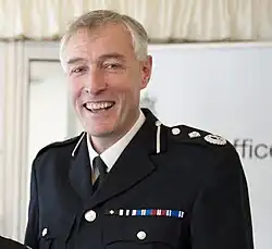His first police service was with the Metropolitan Police in Brixton, Southall and New Scotland Yard (1986–1997), with whom he rose to the rank of Chief Inspector, before being promoted to Chief Superintendent during a subsequent spell in Thames Valley Police (1997–2002).[1][4] He was then promoted to Assistant Chief Constable just before moving to head Territorial Operations (and later Crime and Operations) in Hertfordshire Police (2002–2007) then to become Deputy Chief Constable of Avon and Somerset Police (2007–2016).[1]