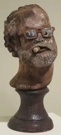 His body of work contains many self-portraits which have has been described as an "autobiography in clay".[6] Doyen from 1972, in the collection of the Honolulu Museum of Art is an example of the artist's humorously caricatured self-portraits.