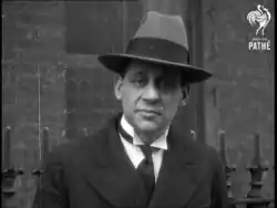 During the Second World War, Briscoe, at this time a member of Dáil Éireann, was placed under close surveillance by the Irish Directorate of Military Intelligence and the Garda Siochana Special Branch. His covert activities in support for Zionism and his lobbying on behalf of refugees were also considered potentially damaging to the interests of the Irish State by senior civil service officials from the Department of Justice. Briscoe was also an admirer and friend of Ze'ev Jabotinsky and his campaign of resistance to antisemitism and his efforts to create a Jewish State.[40][41] Between 1939 and 1940, Robert Briscoe worked closely with former British Army Colonel and Tsavo Valley lion hunter John Henry Patterson, the former officer commanding of both the Zion Mule Corps and the Jewish Legion during the First World War.[42] Together, they were involved in covert fund raising for the Irgun in the United States.[43] Jabotinsky, while head of Irgun, visited Dublin for secret instruction from Robert Briscoe in how the tactics of guerrilla warfare that had proven so successful during the Irish War of Independence could also be used against the continued rule of the British Empire over the Mandate of Palestine.[44] During the same period, Briscoe jokingly described himself as the "Chair of Subversive Activity against England".[45] Briscoe also campaigned for political asylum to be granted to Jewish refugees seeking to flee Nazi Germany, both before and during the Holocaust, but he did so discreetly in order not to be accused of compromising the neutrality policy of the Fianna Fáil government.[46] Briscoe notably had ugly spats with Irish trade envoy to Nazi Germany and avowed anti-Semite Charles Bewley, who tried to thwart his effort to help German Jewish refugees gain visas for Ireland during the war.
