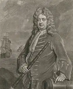- ^ Full dates of promotion: rear-admiral of the blue 21 April 1727, rear-admiral of the white 4 January 1728, rear-admiral of the red 19 July 1728.[2]