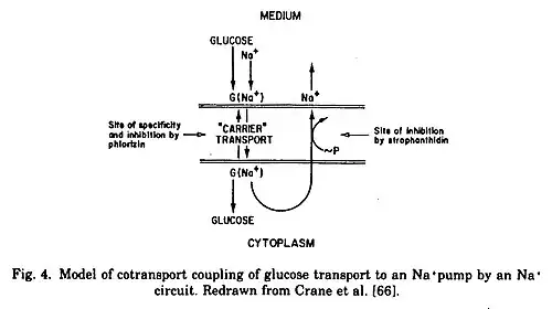 - ^ a b Robert K. Crane, D. Miller and I. Bihler. "The restrictions on possible mechanisms of intestinal transport of sugars". In: Membrane Transport and Metabolism. Proceedings of a Symposium held in Prague, August 22–27, 1960. Edited by A. Kleinzeller and A. Kotyk. Czech Academy of Sciences, Prague, 1961, pp. 439–449. Model of cotransport on page 448.