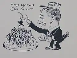 In 1929 Moran was elected sheriff of the Bronx, taking office on January 1, 1930.[23] As sheriff, Moran gained notoriety for refusing to jail members of the National Guard who had been sentenced to serve short prison terms for failing to appear at drill.[24] The jail's lack of accommodations for non-criminal prisoners meant that guardsmen, some just 17 years old, had to be confined with violent felons. Moran argued that "in time of peace and especially now, with distress and unemployment, the military law should not be enforced to extremes" and that no consideration had been given as to whether the boy prisoners were ill, had dependents or might lose their jobs.[4] So strongly did Moran object that the situation could only be resolved by the issuance of a writ of mandamus compelling him to act.[4]