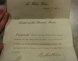- ^ a b c "Robert Lansing - People - Department History - Office of the Historian". history.state.gov. Retrieved 2023-03-08.