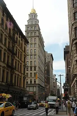 Some important works in New York include: the Guggenheimer Building (1895), the Sohmer Piano Building (1897), the Germania Bank Building (1898, designated NYC landmark 2005),[12] the Yorkville Bank Building (1905, designated NYC landmark 2012)[13] and the Fifth Avenue Building (1909). They were also responsible for extensions to the New York Times Building (1903, designated NYC landmark 1999) and the Goelet Building (1905). Outside of New York City, Maynicke was responsible for the building of the First National Bank of Key West, Florida, completed in 1897.[14]
