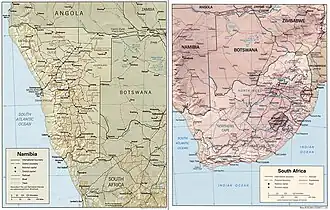 - ^ Today the religion in South Africa, and in neighboring Botswana, Namibia and Zimbabwe is predominately Christian. See: Religion in South Africa, Freedom of religion in Botswana, Religion in Namibia and Religion in Zimbabwe.