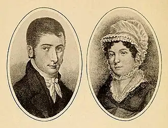 At the age of sixteen, Moffat found employment in the gardens of the Earl of Moray at Donibristle.[8] In 1813, he moved to Manchester, England and worked under John Smith, a merchant. Here he met Mary Smith, who would later become his wife.[9] In 1814, whilst employed at West Hall, High Legh in Cheshire he experienced difficulties with his employer due to his Methodist sympathies. For a short period, after having applied successfully to the London Missionary Society (LMS)[b] he took an interim post as a farmer, at Plantation Farm in Dukinfield (where he first met Mary his future wife). The job had been found for him by William Roby, who took Moffat under his wing for a year. Besides his early training as a gardener and farmer, and later as a writer, Moffat developed skills in building, carpentry, printing and as a blacksmith.[1][3] Moffat also attended the religious services of Reverend Robert Caldwell.[2]