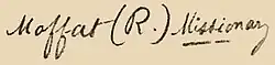 - ^ Moffat wrote at length about Johannes van der Kemp in his 1842 publication, Missionary Labours and Scenes in Southern Africa, covering van der Kemp's twelve years in South Africa.[28]