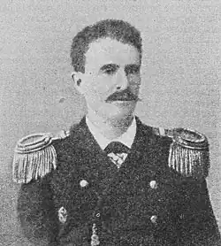 At the start of the Russo-Japanese War, Viren was commanding the Bayan as part of the Russian Pacific Squadron based at Port Arthur. During the Battle of Port Arthur he developed a reputation as a daring and capable commander.[3] Following the death of Admiral Wilgelm Vitgeft at the Battle of the Yellow Sea, Prince Pavel Ukhtomsky briefly took command of the Port Arthur Squadron, but could not command the support or respect of his peers. As no one officer could reach the besieged port, Viren, although a relatively junior officer with low seniority was promoted to rear admiral and on 4 September 1904 took command of the squadron during the last four months of the siege.[3] During this time, with the besieged fleet unable to sortie and under continuous bombardment from land, Viren ordered that his warships be stripped of their guns, which were used to bolster the port's landward defenses, and his sailors were ordered to fight as naval infantry. He was wounded in combat in November 1904. After the surrender of Port Arthur, he was taken as a prisoner of war by the Japanese. After the war, he was awarded the Gold Sword for Bravery and the Order of St George, 4th degree, as well as the Order of St. Stanislaus, 1st class with swords.
