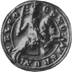 - Isabel de Brus (1249 – c. 1284), married (as his first wife) Sir John FitzMarmaduke, Knt., of Horden, Eighton, Lamesley, Ravensholm, and Silksworth, County Durham, Sheriff of North Durham, and joint warden beyond the Scottish Sea between the Firth of Forth and Orkney. He fought on the English side at the Battle of Falkirk, 22 July 1298, and was present at the Siege of Caerlaverock Castle in 1300. In 1307 he was commanded to assist the Earl of Richmond in expelling Robert de Brus and the Scottish rebels from Galloway. In 1309 his armour and provisions in a vessel bound for Perth were arrested off Great Yarmouth. He was governor of St. John's Town (Perth) in 1310 until his death. Isabel was buried at Easington, County Durham.[7]