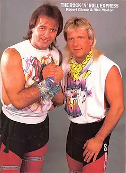 ![]() The Rock 'n' Roll Express, c. 1985; Morton (left) and Gibson (right). | |
