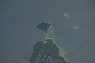![]() Rock Island (above and to the center) on June 20, 2016, taken from the International Space Station. The photograph is oriented so north points towards the upper left. | |