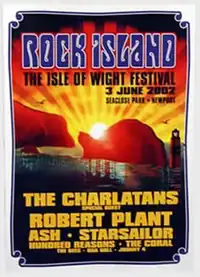 Rock Island was the first revived Isle of Wight Festival to take place on the Seaclose Park site in Newport on the Isle of Wight. It was a one-day event held on 3 June 2002. The event had a capacity of 22,000,[1] however only around 8 to 10,000 attended.[2] Local band Neglected Youth won the right to open the concert in a recent talent contest,[3] a tradition that would be continued throughout subsequent years of the festival. Limited camping facilities were also made available on fields nearby.