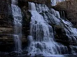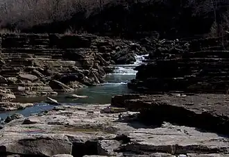 Rock Island State Park is a state park in Warren County and White County, Tennessee, located in the Southeastern United States. The park is named after the community of Rock Island, Tennessee, which in turn received its name from an island on the Caney Fork upstream from the Collins River confluence and Great Falls Dam.[1] Rock Island State Park is centered on a peninsula created by the confluence of these two rivers and extends downstream to the headwaters of Center Hill Lake.