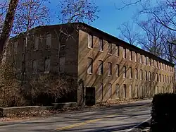 In 1881, the completion of a railroad brought larger industries to the area.[4] In the mid-1880s, entrepreneur Asa Faulkner purchased the Bosson Mill property with plans to build a large cotton mill. Faulkner and several partners raised $30,000 in capital and chartered the Falls City Cotton Mill Company in 1892. The company built a wheelhouse to harness the power from Great Falls and divert it to the cotton mill, higher up on the bluffs. The company also developed a small town for the mill's workers which became known as "Falls City." Along with the spring castle that still stands, the town had its own post office and general store. In 1902, however, the company met the same fate as the Bosson Mill when the Caney Fork flooded again. The mill was high enough to escape harm, but its wheelhouse was completely wiped out. The flood also destroyed the company's tollbridge, which spanned the river just upstream. The company abandoned the mill shortly thereafter and the town died out.[5]