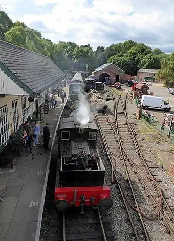 Rockingham (South Yorkshire) railway station is the terminus of the preserved line which is being built along the trackbed of the former Elsecar branch of the South Yorkshire Railway. The station is built within the Elsecar Heritage Centre, the former National Coal Board workshops at Elsecar.[2] The station officially opened to passengers on 5 April 1996, when the inaugural train ran to Hemingfield.[3]