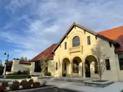 With the neighborhood experiencing rapid growth and development in the second decade of the 20th century, there became the need for a school in Rockwood. A one-room school was built in 1917, and soon replaced by a much larger facility. In 1920, Hutton School was built in the south-central area of the neighborhood. It was designed in a Spanish eclectic style, with stucco walls, red tile roofing, arched entryways and windows, and exposed wooden beams. The school has subsequently been expanded on three occasions, in 1949 and 1956, and then in 2015 when the 1949 and 1956 expansions were removed and replaced with a new, two-story structure for cost of $29 million. The historic 1921 building remains intact and contains the main entrance, library, offices and some classrooms. The building was listed on the Spokane Register of Historic Places in 2015.[8]