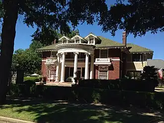 The Rogers House is a historic house at 400 West 18th Street in Little Rock, Arkansas. It is a large two story brick building, with an eclectic combination of Georgian Revival and American Craftsman features. It was designed by Arkansas architect Charles L. Thompson and completed in 1914. It has a green tile hip roof with extended eaves that show Craftsman style rafter ends, and is pierced by gabled dormers, which also have extended eaves, with large brackets for support. A half-round entry portico projects from the front, supported by monumental fluted Ionic columns. The house is one of Thompson's more imposing designs.[2]