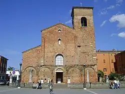 A new cathedral was built upon the petition of the Provost and Chapter and the citizens of Cesena, with the permission of Pope Urban VI, and named in honor of S. Giovanni Battista. Construction began in 1408.[14] The cathedral was staffed and administered by a corporation called the Chapter, which consisted of two dignities (not dignitaries), the Provost and the Archdeacon, and fifteen Canons. In addition there was a Theological Prebend and a Penitential Prebend.[15] In the mid-19th century, the Chapter was composed of three dignities (Provost, Archdeacon, Archpriest) and ten Canons.[16]
