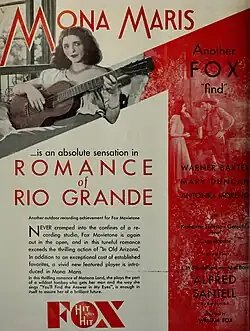Romance of the Rio Grande (also: En kärleksnatt vid Rio Grande) is a 1929 American sound (All-Talking) pre-Code Western musical film directed by Alfred Santell and starring Warner Baxter, Mona Maris, Mary Duncan, and Antonio Moreno. It was produced and distributed by the Fox Film Corporation in both a Movietone talking version and also a silent version.[2][3]