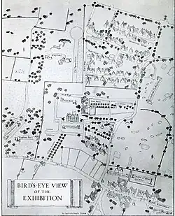 Upon completion, a competition was held in the summer of 1911 to find the best building, an event that was witnessed by Raphael, Walters, McCurdy, and Sir Frederick Treves, among others.[24] A first prize of £250 and a gold medal was awarded to the winning architect and builder.[34] The judges, Guy Dawber, Henry Vaughan Lanchester and Mervyn Macartney, gave the best detached houses a Class I status, which would allow the property to be sold for £500. The best detached cottages were given a Class II status which allowed them to be marketed for £375.[18] Smaller prizes were given for best internal decoration, best town plan, best garden design, drawings, and excellence in craftsmanship and construction.[24] Admission to the public, and prospective buyers, was free.[35] A sales office was opened at 75 Main Road, opposite Balgores Lane, in 1913 to cope with purchase enquiries and viewings. The building was thought by Nikolaus Pevsner to have been originally built for the Japan–British Exhibition in White City, but was relocated to its current site.[36][n 4] Balgores House, which was built in the 1850s, since renamed to Gidea Park College, served as the exhibitions refreshments room.[38]
